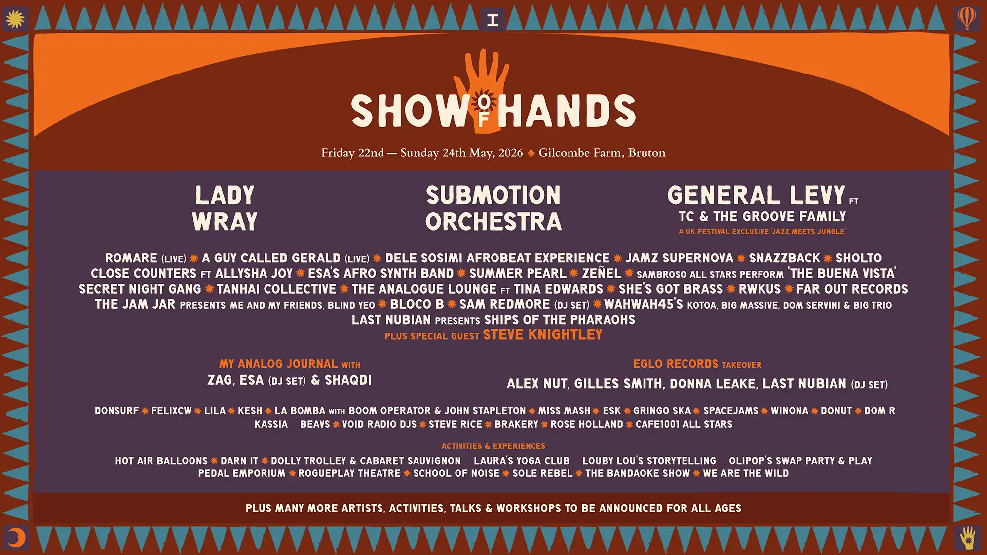 Show of Hands, set to run from Friday to Sunday, May 22 to 24 next year, at Gilcombe Farm in Bruton, will welcome the likes of soul songstress Lady Wray, Leeds seven-piece Submotion Orchestra and more.