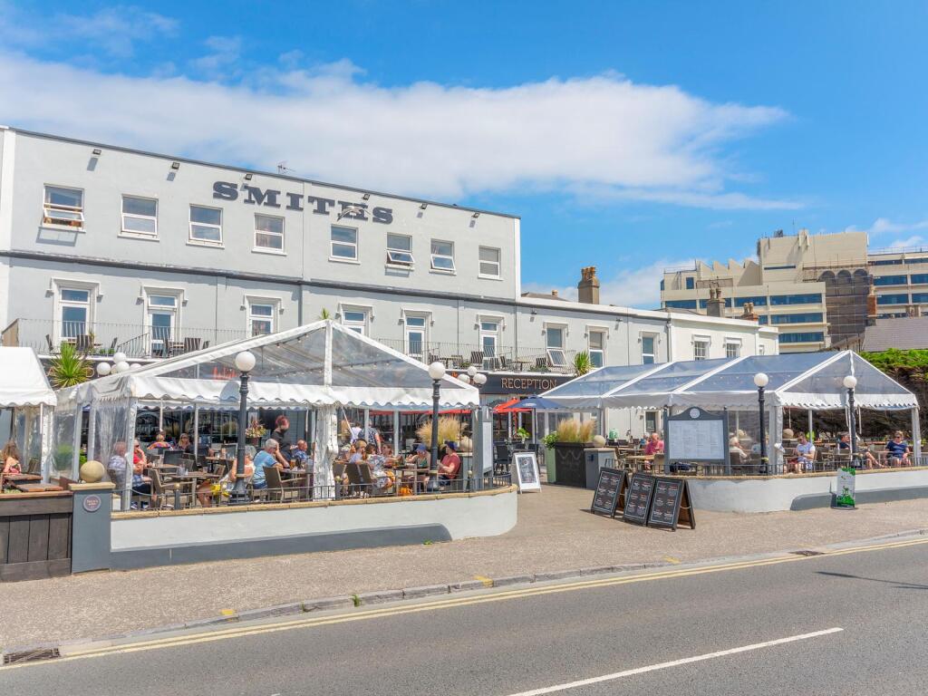 Outside, the hotel has the large external terrace, and “attracts custom from the many visitors walking past on route to the beach and town centre”.