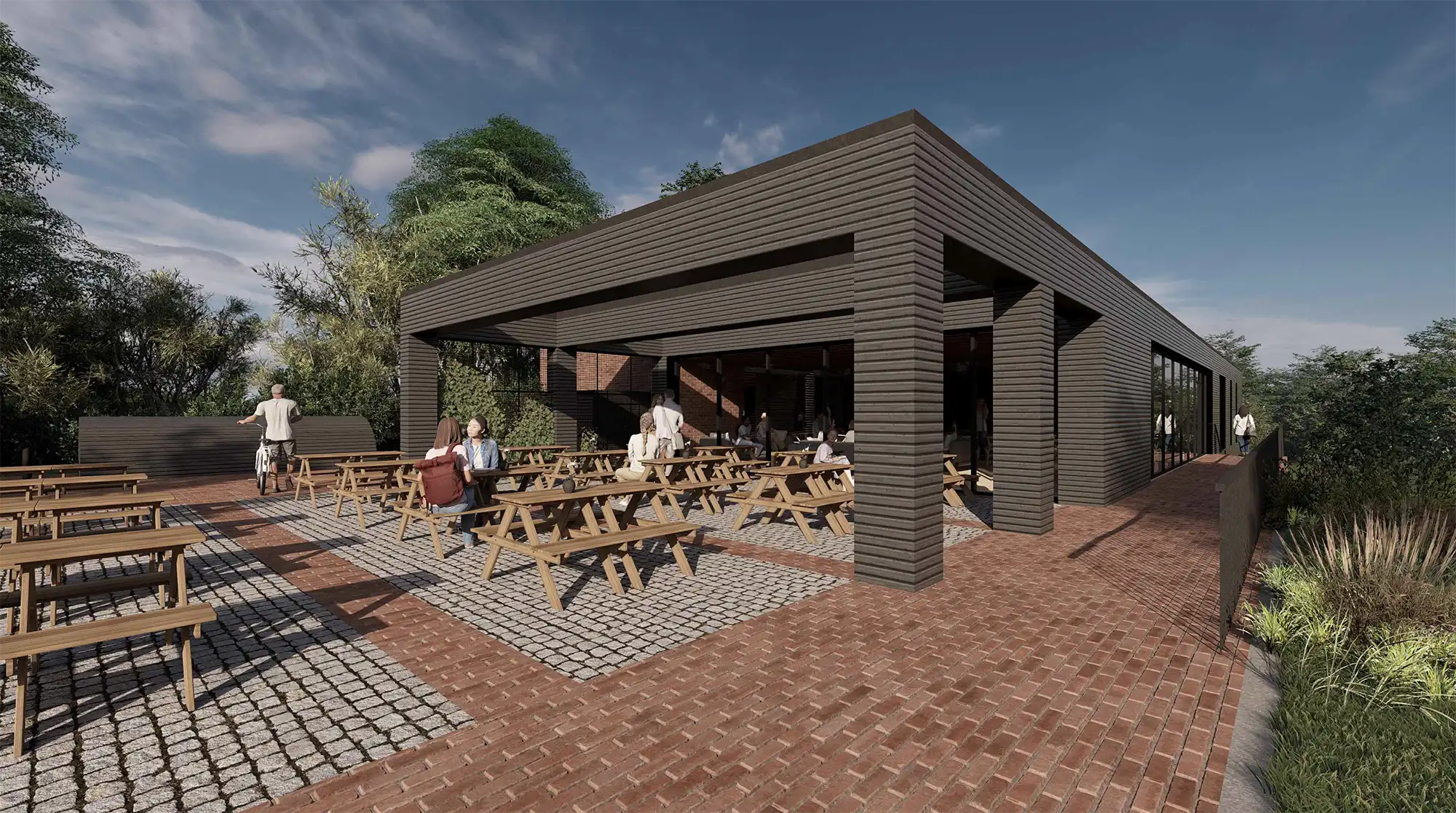 “The northern section is a bar and function area, while the southern portion is a softer café environment that links to the exterior outdoor terrace to the north.