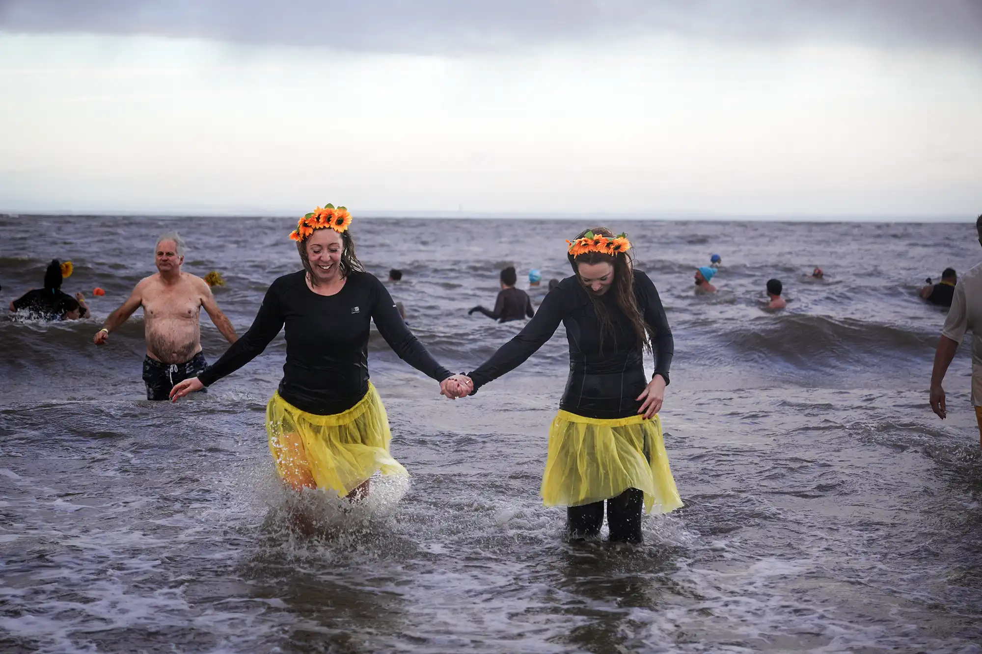 Events manager Shauna Booker led the countdown, before dozens of eager swimmers made their way into the water – including many donning fancy dress for their dip.