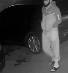 “He is described as being of slim build, with dark hair, beard and a moustache. He is shown wearing a hat, glasses, sliders, a zip-up jackets and trousers.”