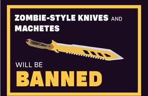 Starting at midnight on September 24, it will be a criminal offence to possess a zombie-style knife or machete.