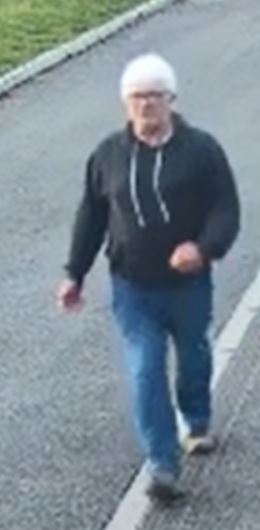 The man is described as having short white hair and was wearing a dark coloured hoodie, blue jeans and brown boots at the time.