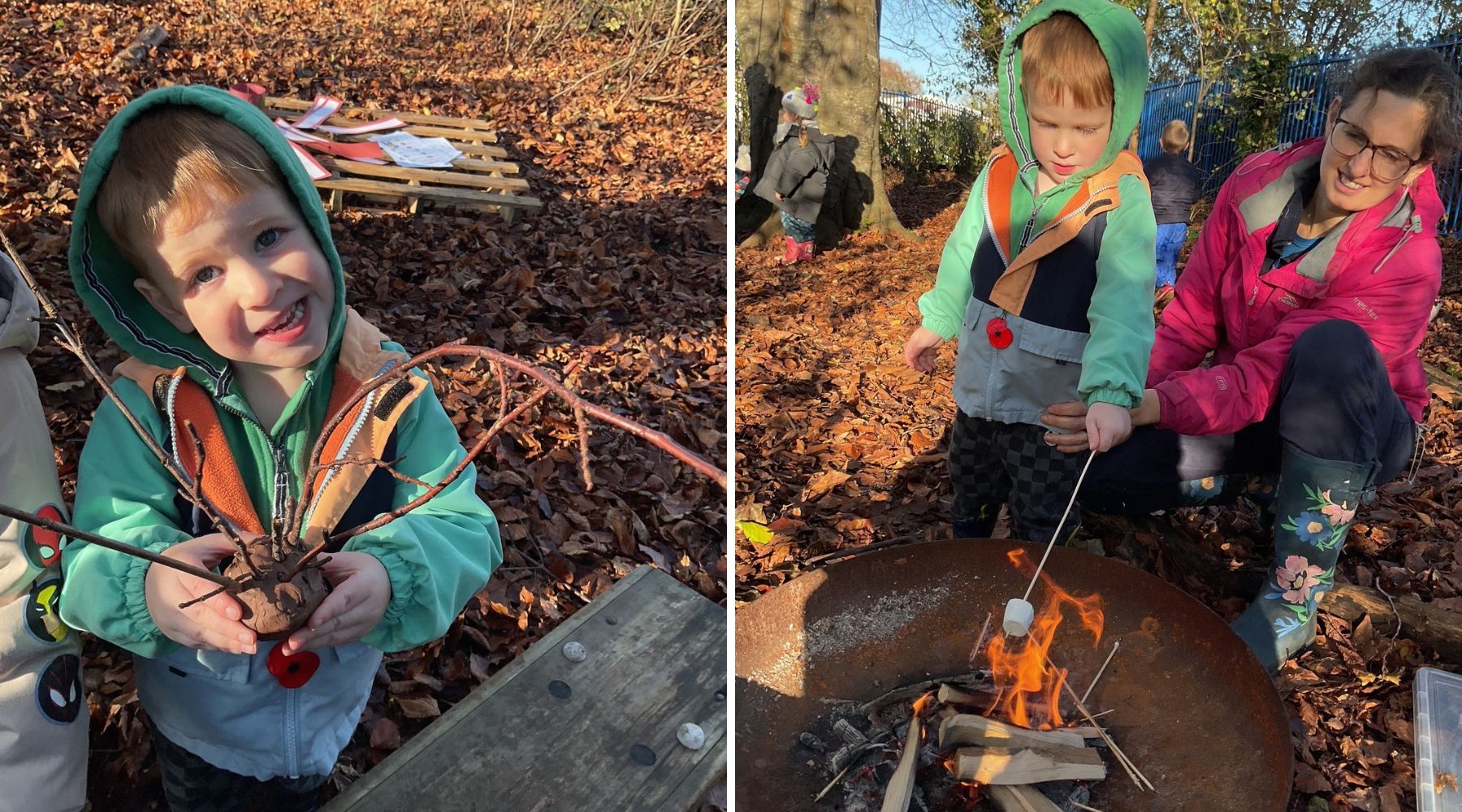 The visitors enjoyed an array of outdoor activities, from making clay hedgehogs and leaf caterpillars to completing a scavenger hunt and toasting marshmallows.