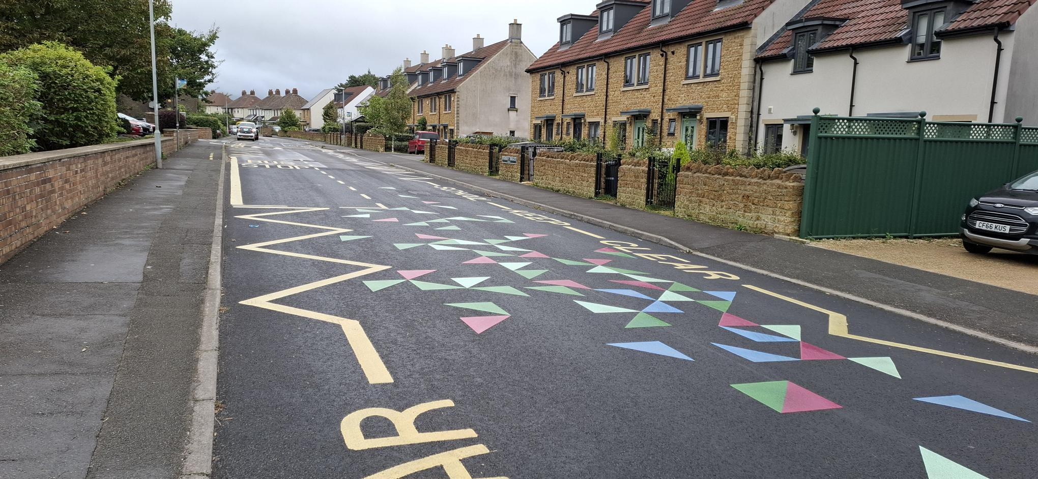 The road markings form part of a larger scheme designed to make motorists slow down on the streets around Oakfield Academy and Critchill School and include a new 20mph zone, new crossings, changes to traffic priorities and the inclusion of a pedestrian and cycle zone.