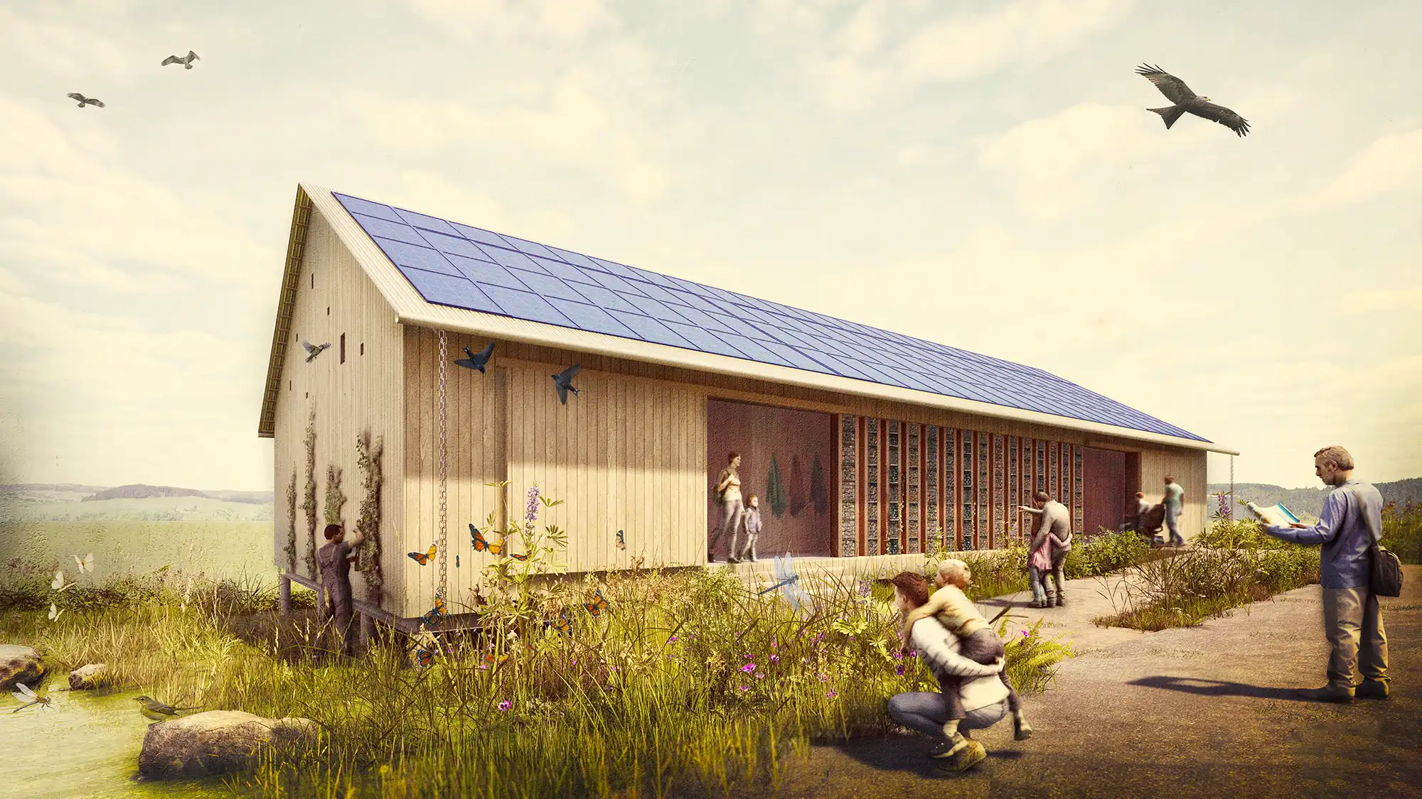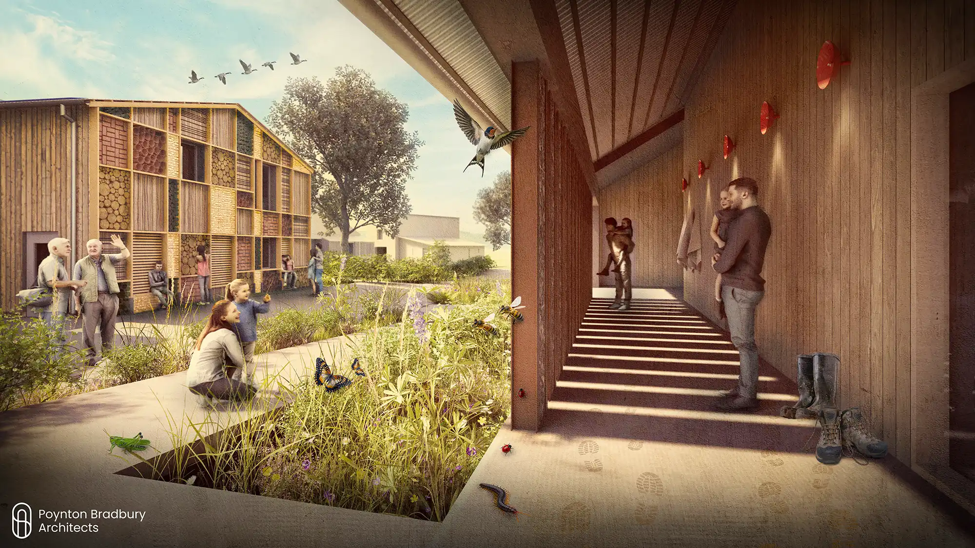 “We asked for energy and water efficient buildings that are able to withstand flooding, power cuts and increasing temperatures. We wanted to use sustainable materials, including those already on site wherever possible, and we asked for all buildings to create space for nature from the outset.