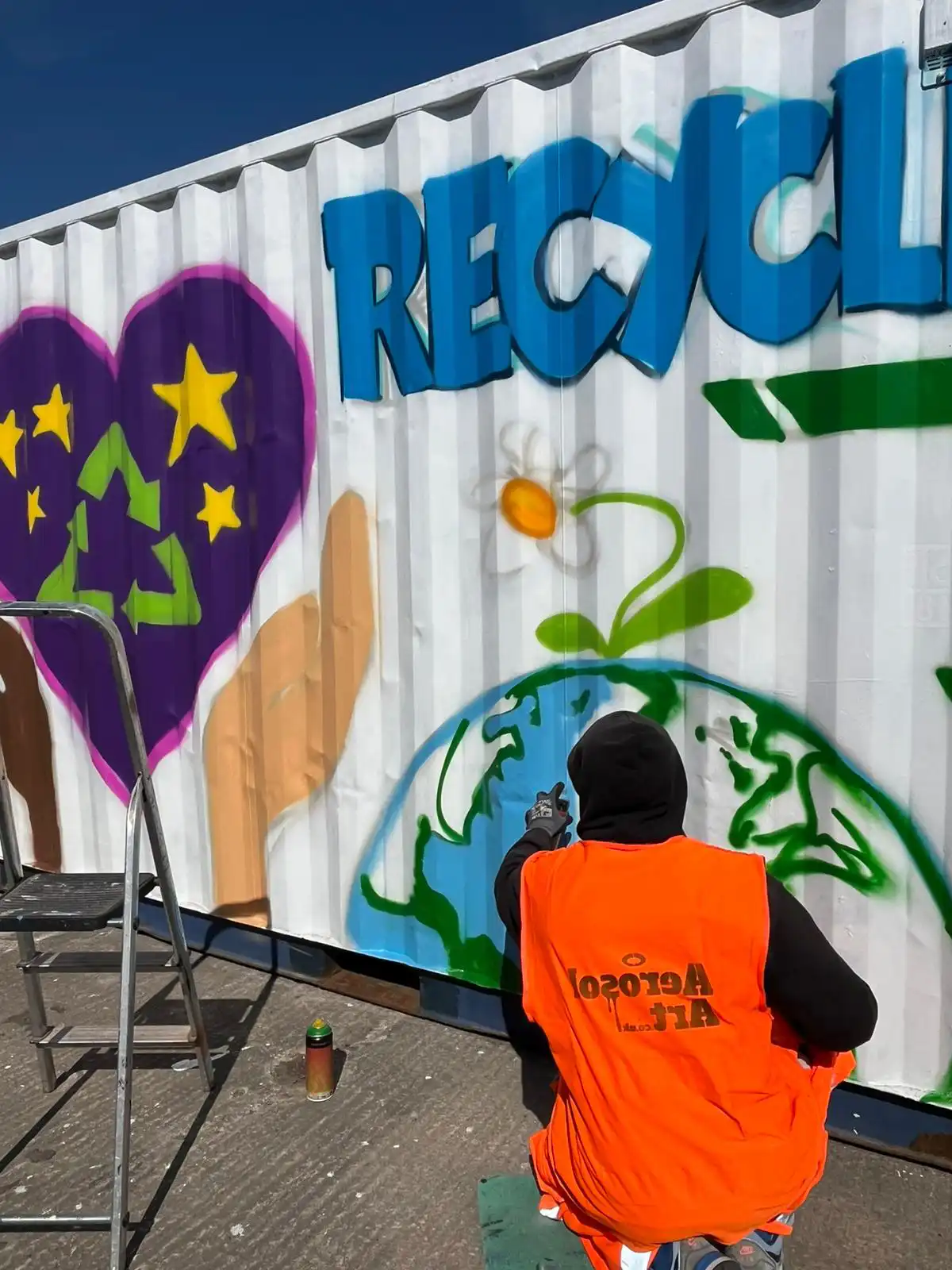 The mural aimed to capture the energy and message of the young artists’ submissions, transforming the old container into a bold visual statement promoting the circular economy, artist Sam said.
