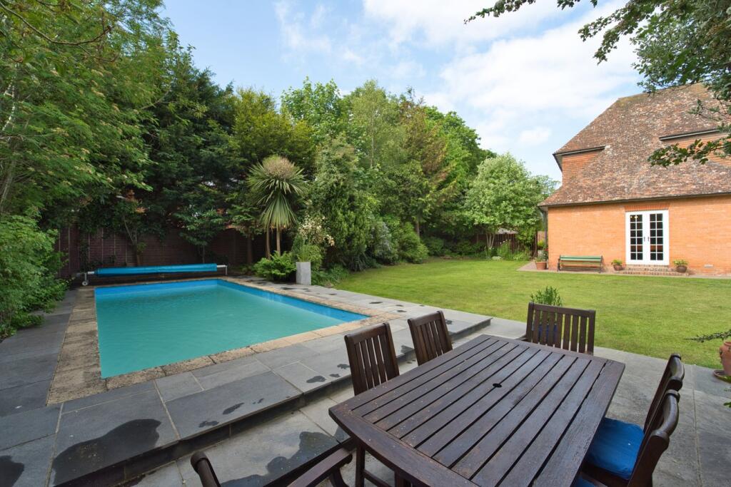 As well as five bedrooms, the property also boasts a panelled billiards room, installed by Travers, four reception rooms and a kitchen/breakfast room, as well as a swimming pool.