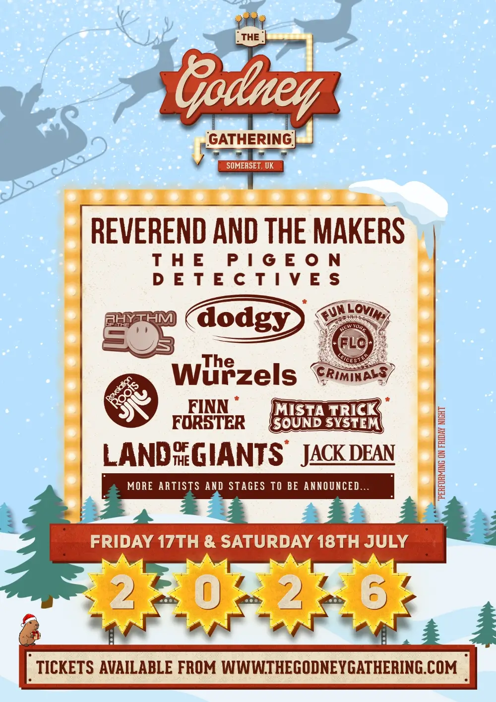 DODGY, Reverend & The Makers, the Pigeon Detectives and the Fun Lovin’ Criminals will appear at the 2026 edition of Godney Gathering.