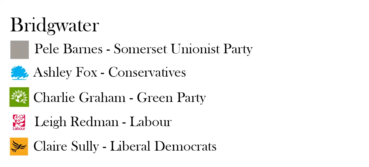 Note – both Labour and the Conservatives appear to be branding this seat ‘Bridgwater & Burnham’ in campaign literature – we can only presume in a bid to reassure voters they haven’t forgotten the seaside town, even though it is not, officially, in the constituency name.
