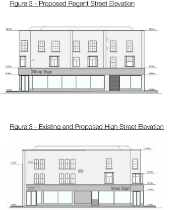 The application also includes minor alterations to the building, including increasing the height of the southern portion of the main roof to match the existing three storey Regent Street elevation, to facilitate the residential layout on the upper floor.