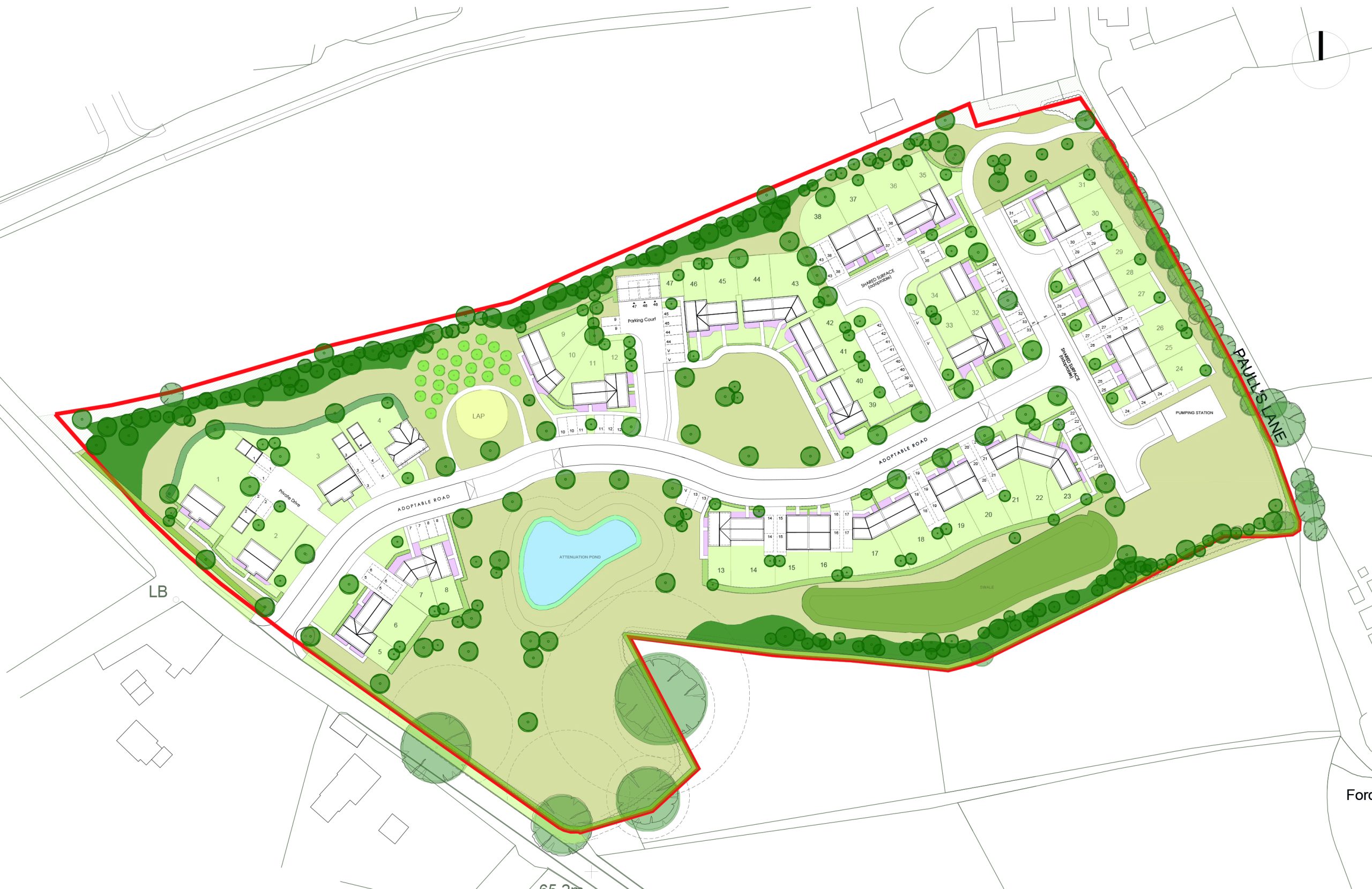 The plans, which faced strong objections from residents and the parish council, would see homes built on land between Pound Road and Paulls Lane with 16 of the homes being “affordable”.
