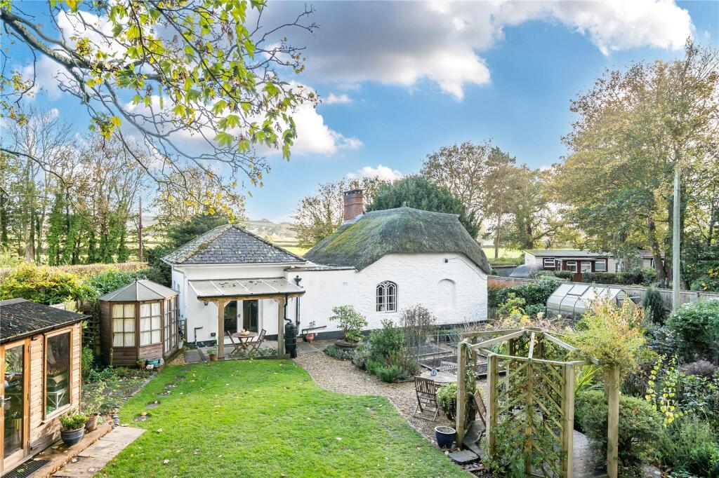 With a thatched roof and “period character, modern comfort and idyllic countryside surroundings”, the house boasts three bedrooms, including one en-suite, plus a unique circular sitting room with a character fireplace.