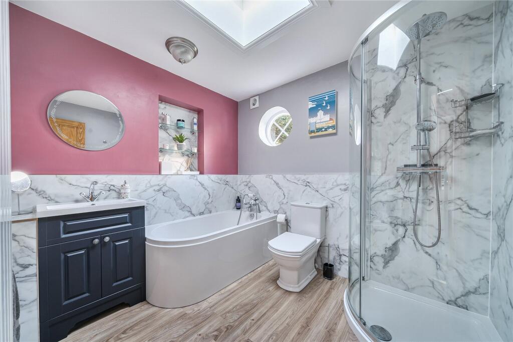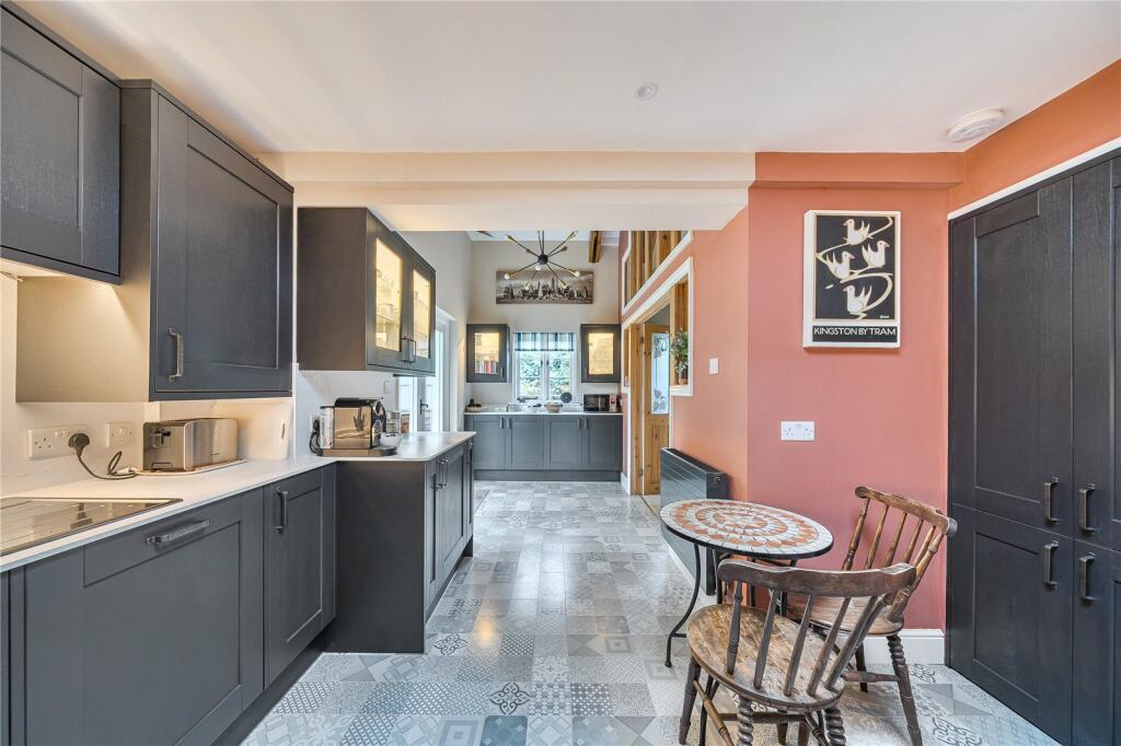It also features a kitchen/breakfast room, and a part-vaulted ceiling with exposed beams.